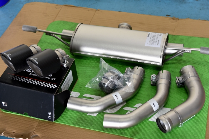 WORKホイール、コンチネンタルタイヤでコンプリート販売していた車両ですがご成約と共に追加オプションでREMUSマフラー、iSWEEPルーフエクステンション、ドラレコをオプションで追加オーダー頂きました!!