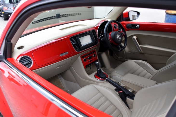 ビートルと言えばやっぱりこの組み合わせ、トルネードレッドとベージュレザーのコンビですね!